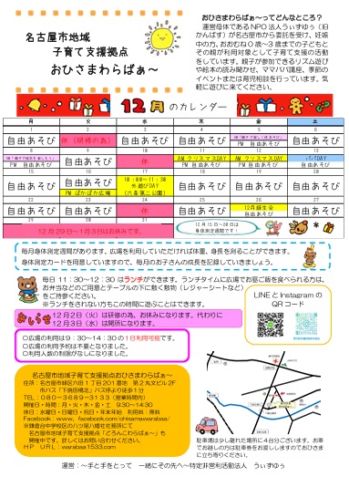 2025年11月17日 / 最終更新日時 : 2025年11月17日 warabaakko_1533 おひさまわらばぁ~ おひさまわらばぁ~ イベントカレンダー(12月) Follow me! コメントを残す コメントをキャンセルメールアドレスが公開されることはありません。 ※ が付いている欄は必須項目ですコメント ※ 名前 ※ メール ※ サイト 次回のコメントで使用するためブラウザーに自分の名前、メールアドレス、サイトを保存する。 Δ