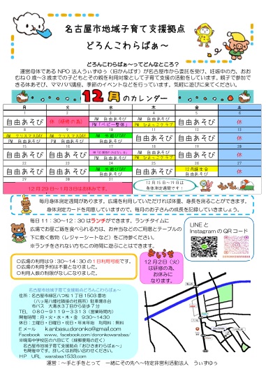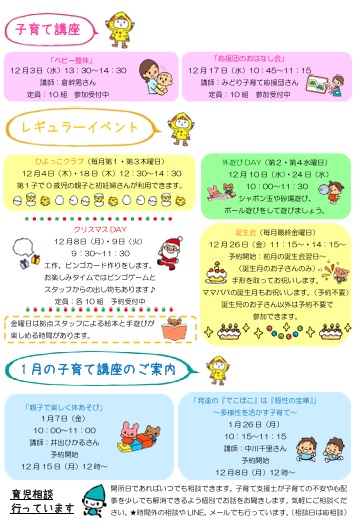 どろんこわらばぁ~ イベントカレンダー(12月)