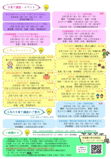 2026年1月26日 / 最終更新日時 : 2026年1月26日 warabaakko_1533 ひよっこわらばぁ~ ひよっこわらばぁ~ イベントカレンダー(2月) Follow me! コメントを残す コメントをキャンセルメールアドレスが公開されることはありません。 ※ が付いている欄は必須項目ですコメント ※ 名前 ※ メール ※ サイト 次回のコメントで使用するためブラウザーに自分の名前、メールアドレス、サイトを保存する。 Δ